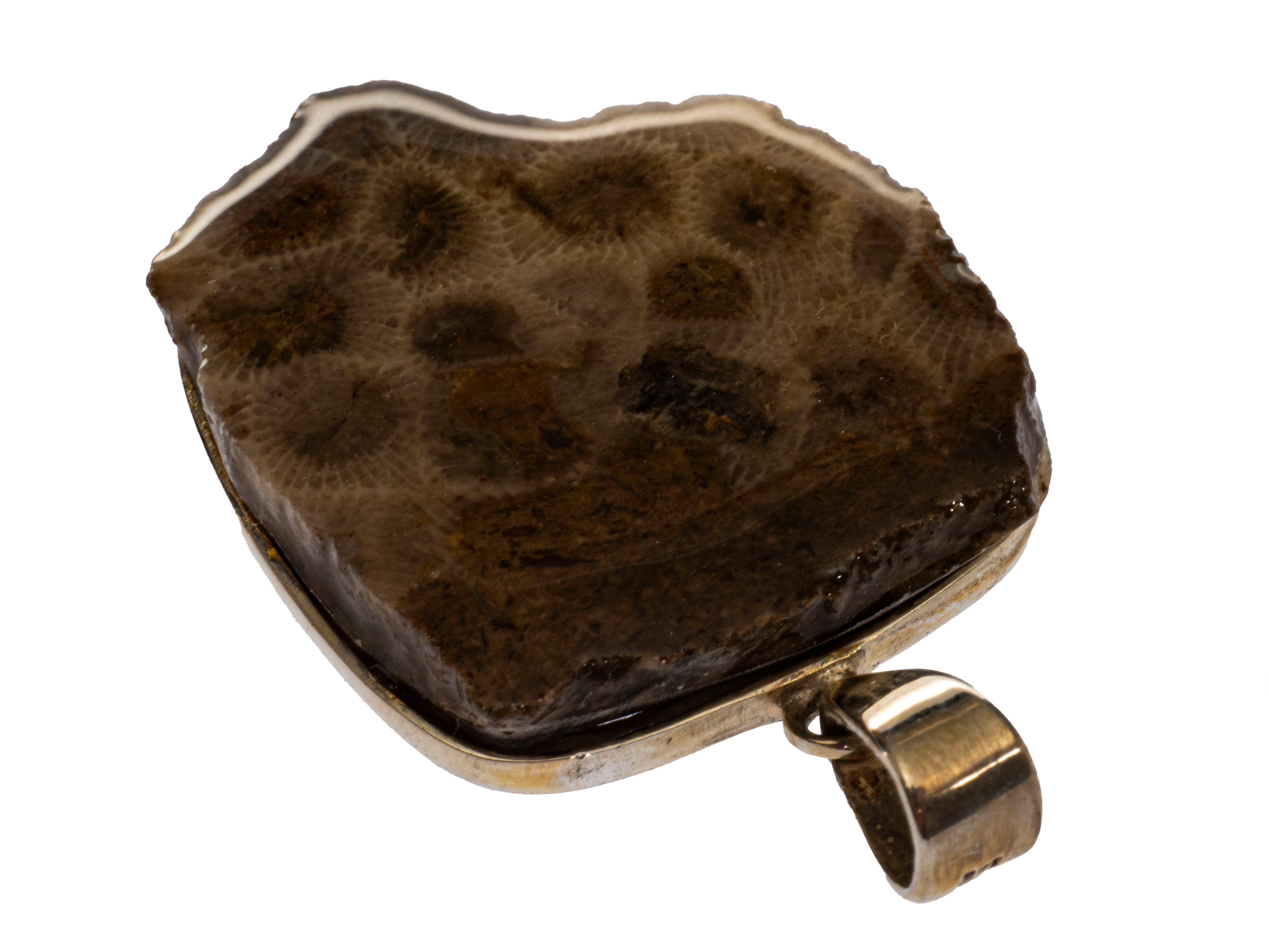 オーシャンジャスパーペンダントトップ シルバー925ジュエリー 産地:インド 8×7×33㎜ 11g 蜂の巣珊瑚の化石です。