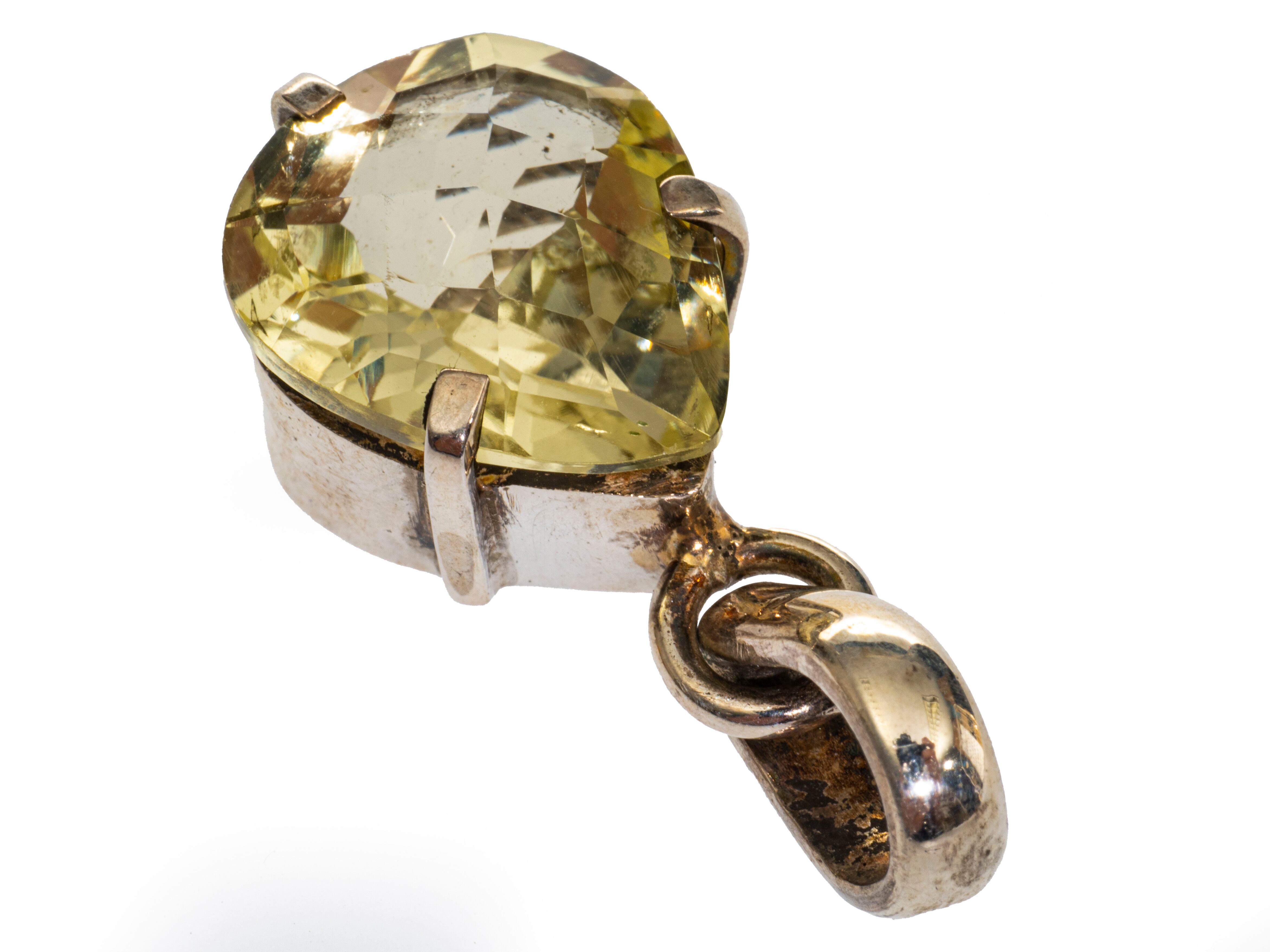 シトリンペンダントトップ シルバー925ジュエリー 産地:ブラジル 12×10×15㎜ 6g レモン色のラジエーションクォーツ。