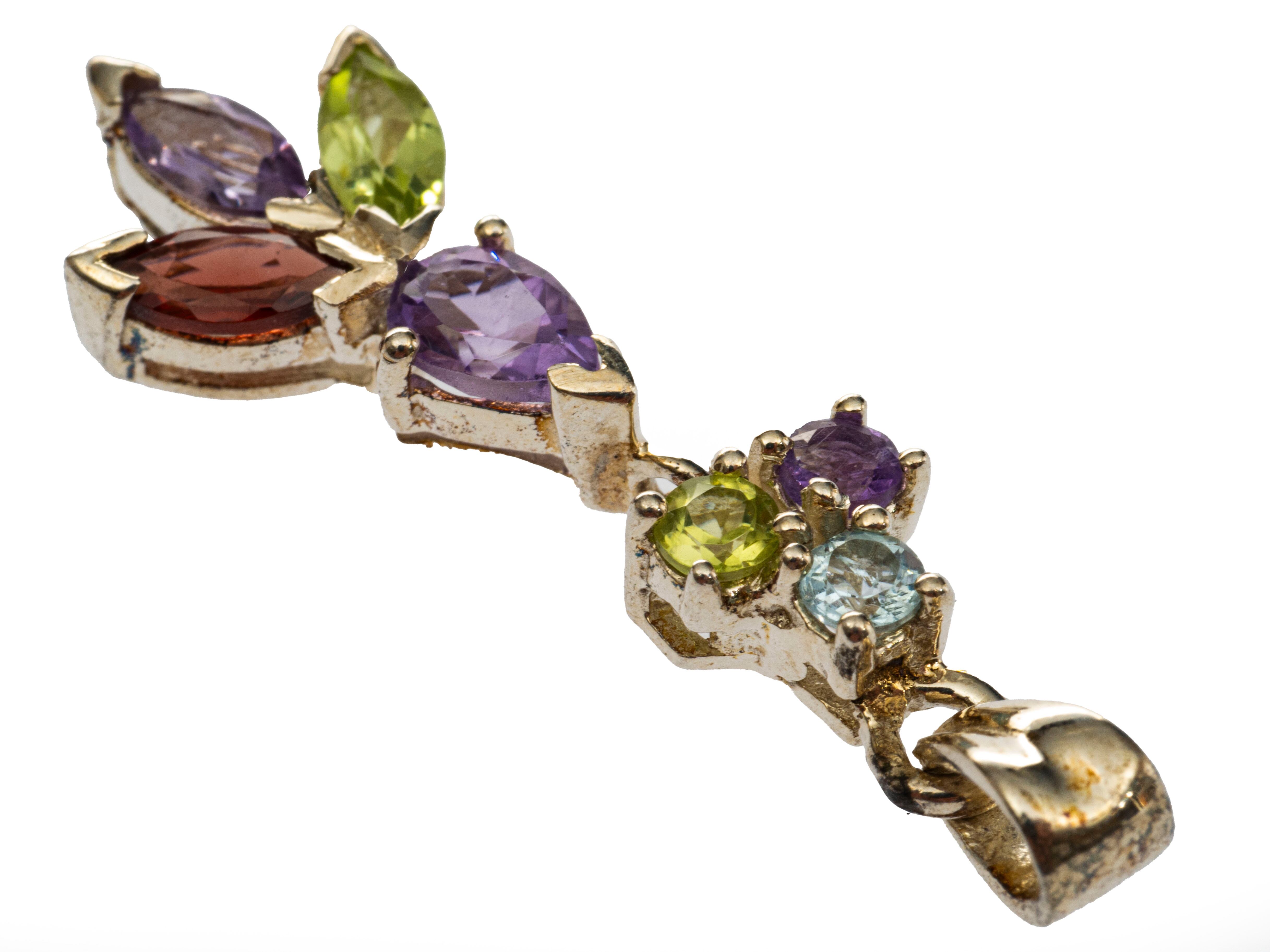 シトリン、ガーネット、ブルートパーズ、ペリドットの宝石を使用した贅沢な逸品です。