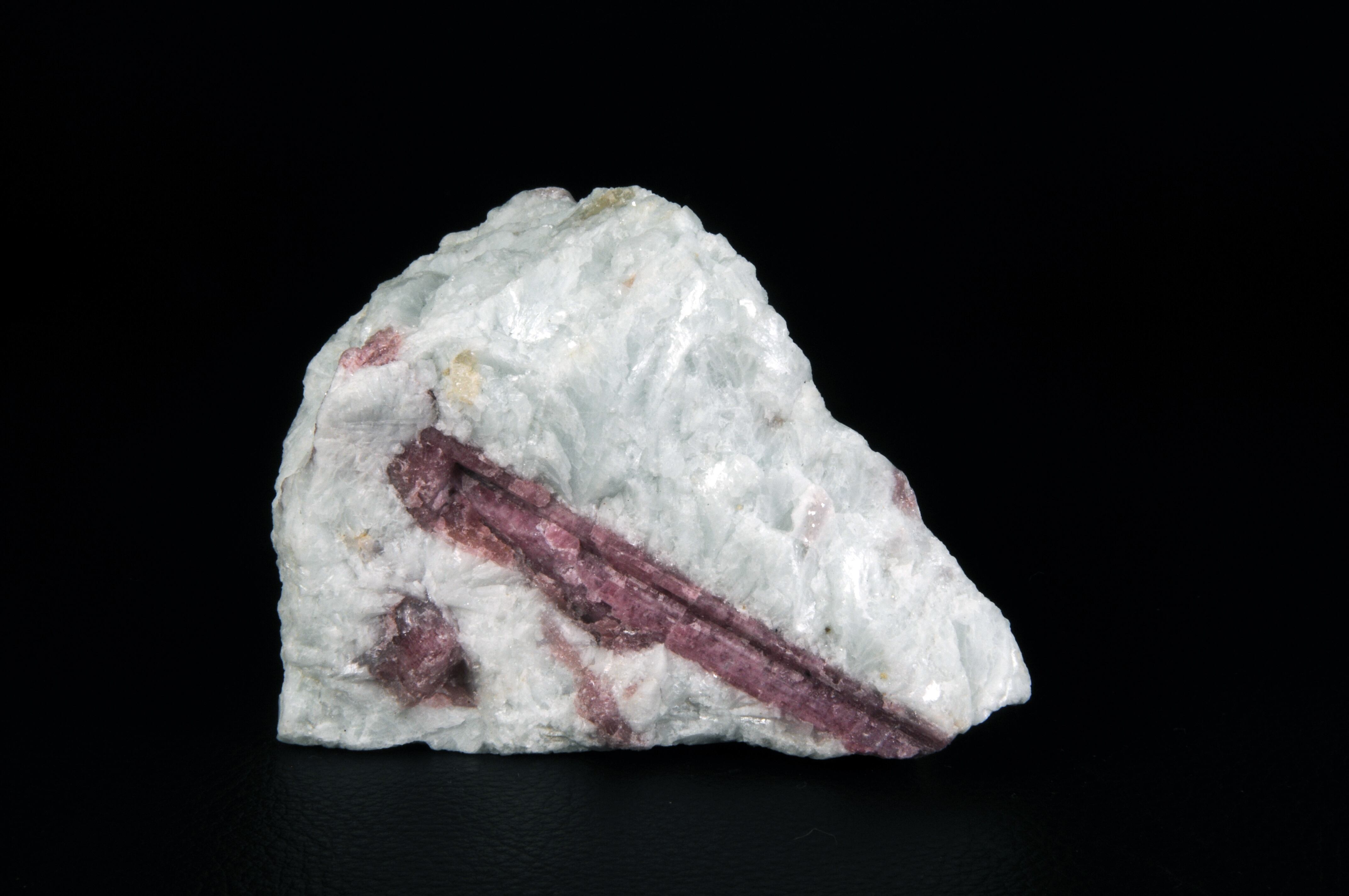 ライトを照射すると美しいピンク色を放ちます。